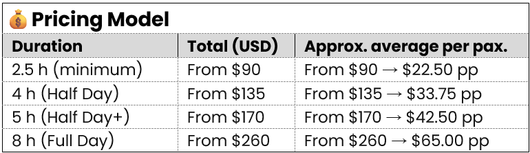 “Flexible, friendly, and knows every hidden spot. We took a half‑day trip that included the early morning romantic walk — unforgettable!”